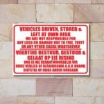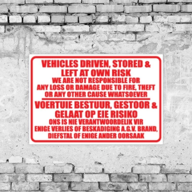 Our indemnity and disclaimer signs are designed to communicate terms of entry, service limitations, and user responsibilities effectively—ensuring that customers and visitors are well-informed before engaging with your space or services.
