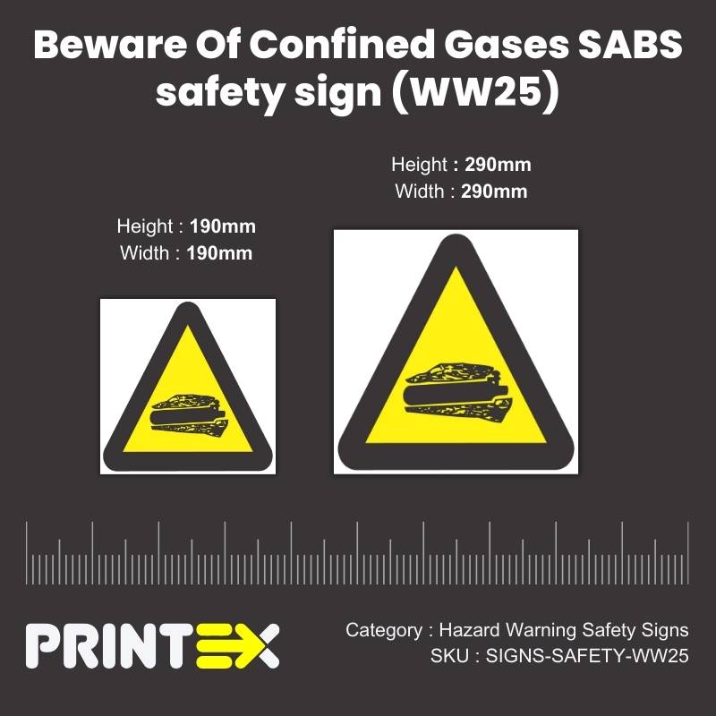 Prevent accidents and promote hazard awareness with SABS-approved Beware Of Confined Gases Safety Sign (WW25) in South Africa. These essential safety signs help alert employees, visitors, and the public to potential dangers, ensuring compliance with SANS 1186-1 and OHSA safety regulations. Designed with high-visibility yellow backgrounds and bold black symbols, they provide instant recognition of workplace hazards, reducing the risk of injuries and legal liabilities.