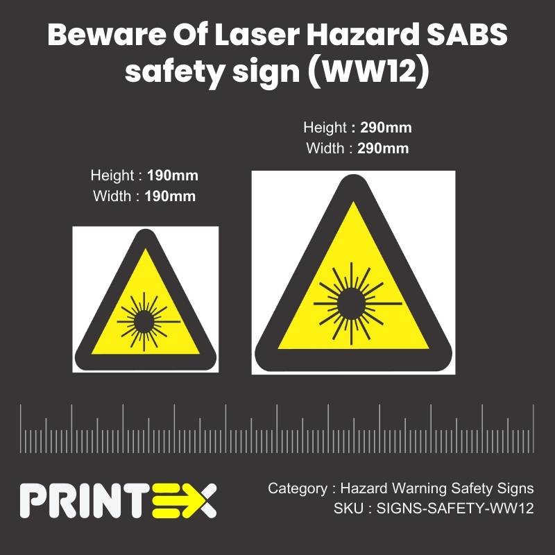 Prevent accidents and promote hazard awareness with SABS-approved Beware Of Laser Hazard Safety Sign (WW12) in South Africa. These essential safety signs help alert employees, visitors, and the public to potential dangers, ensuring compliance with SANS 1186-1 and OHSA safety regulations. Designed with high-visibility yellow backgrounds and bold black symbols, they provide instant recognition of workplace hazards, reducing the risk of injuries and legal liabilities.