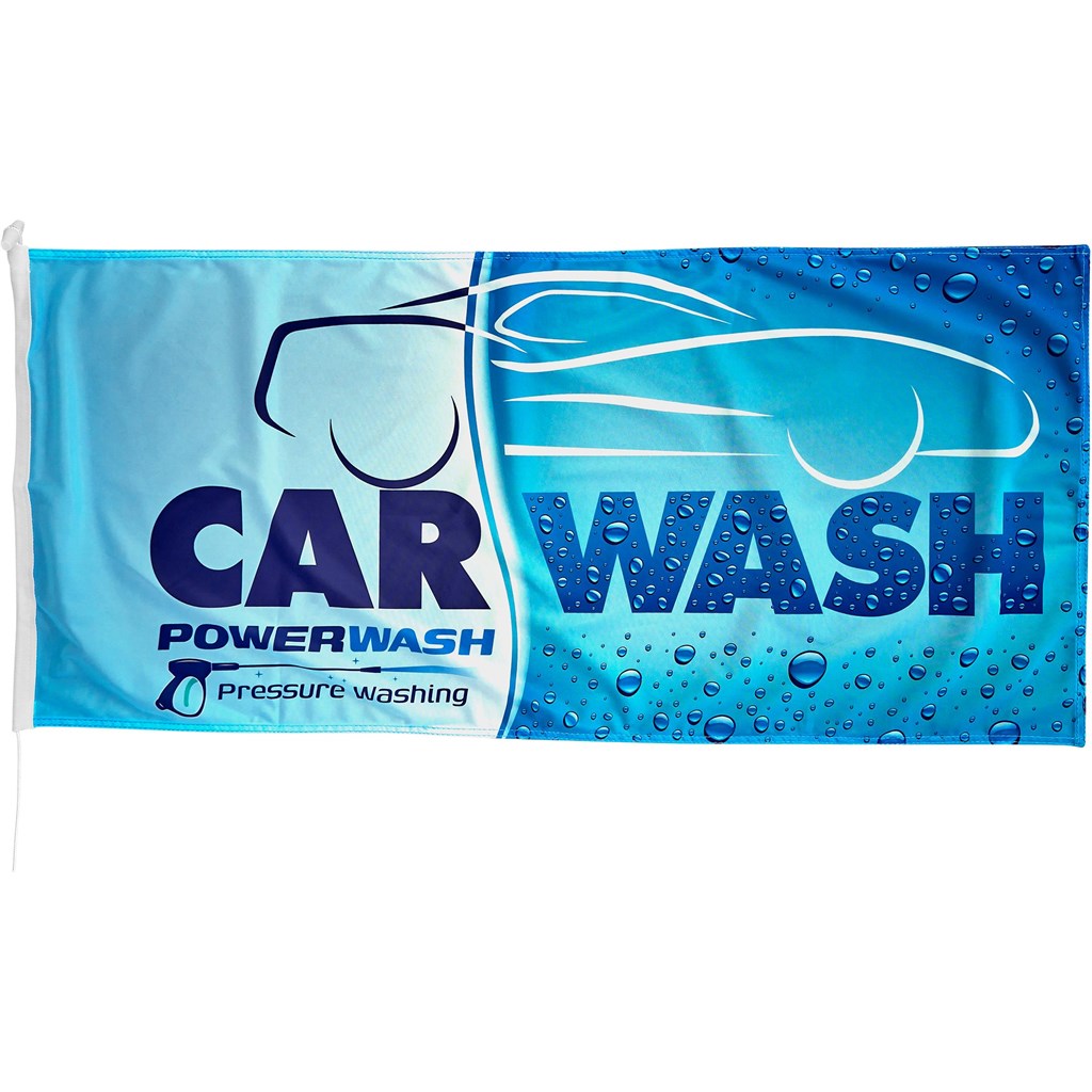 Flag is hemmed and finished with rope and toggle for easy attachments to pole. Flag sold without hardware. Branding method is Digital dye sublimation. Flag is folded into a sealable waybill, quantity dependant. For short term outdoor exposure as this is a dyesublimated digital print.