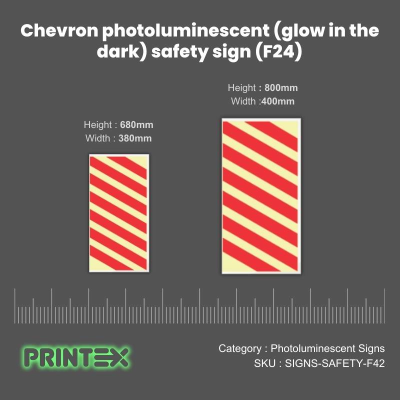 Stay compliant and enhance workplace safety with the Chevron photoluminescent safety sign (F24) that work when you need them most. Order today for peace of mind and SABS-certified quality.