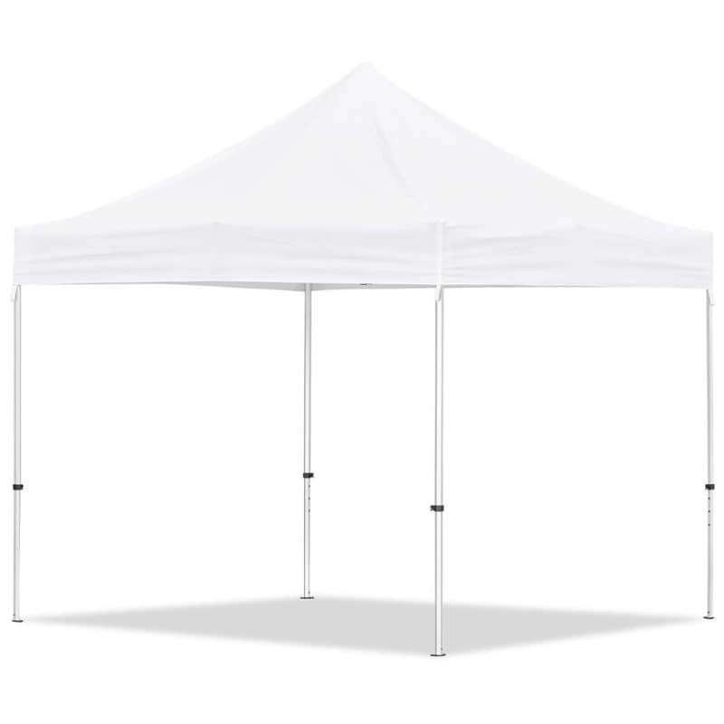 - Optional extras: branded half or full walls, ground pegs, and sandbags