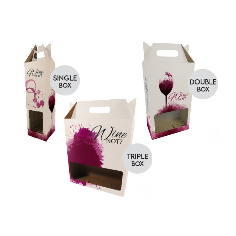 Each box is die-cut with a convenient carry handle and front window, assembled with a single glue seam, and delivered flat for easy storage and transport. Designed to enhance the unboxing experience, these wine boxes add a personal, premium touch to any gift presentation.