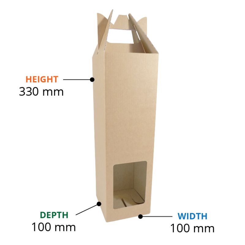 - Single Bottle Box: 100mm (L) x 100mm (W) x 330mm (H)