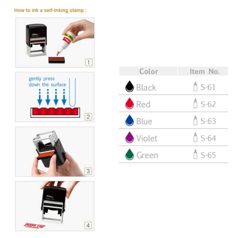 br /> It’s best to use water-based ink specifically designed for Shiny Self-Inking Stamps. Avoid using oil-based or other incompatible inks, as they can damage the stamp or clog the mechanism.
