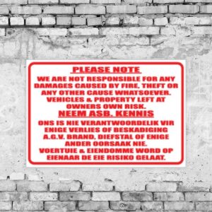 Our indemnity and disclaimer signs are designed to communicate terms of entry, service limitations, and user responsibilities effectively—ensuring that customers and visitors are well-informed before engaging with your space or services.