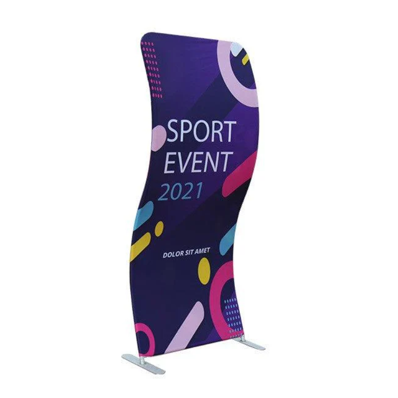 The fabric sock s-banner is light, easy to assemble, and is eye-catching. It has become very popular due to the ease of rebranding when it’s time to run a new campaign. New prints are cost-effective, light to transport and are very simple for the end-user. \