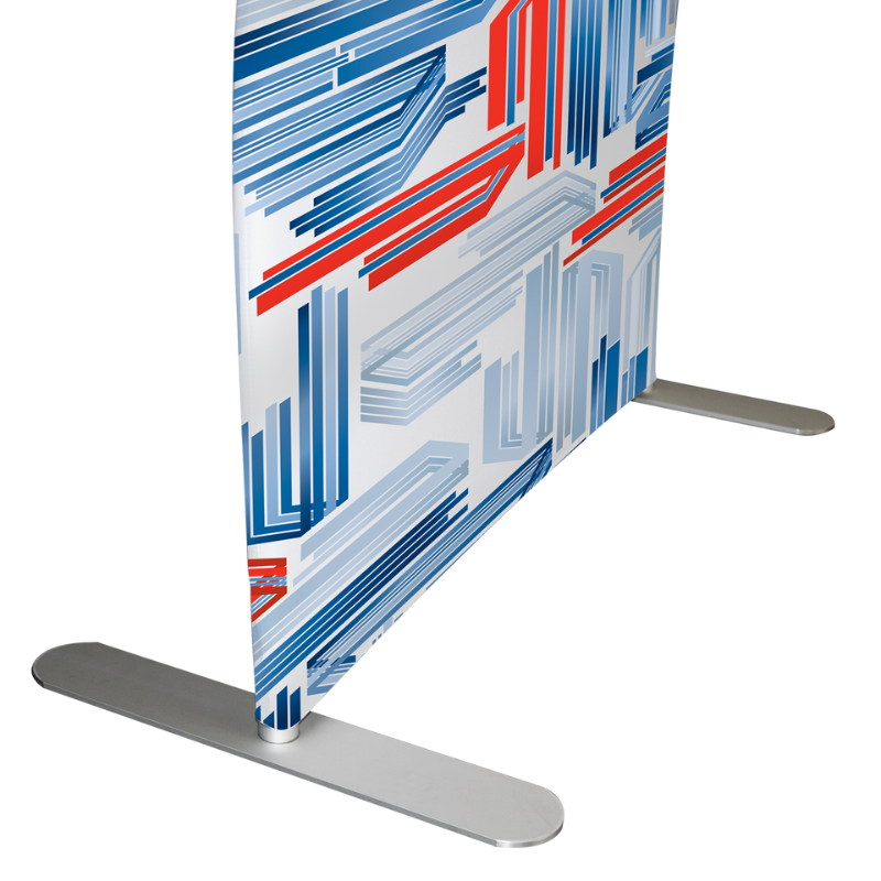 Each display consists of a lightweight aluminium frame covered with a stretch fabric graphic that slips over like a “sock” and zips closed for a taut, crease-free finish. The result is a vibrant, double-sided visual that’s easy to set up, transport, and reuse.