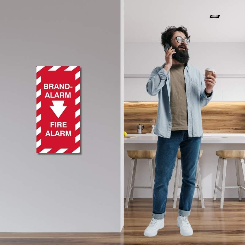 The colors used in the sign, typically red and white or a combination of contrasting colors, are chosen for high visibility and easy recognition, even in low-light conditions or during emergencies. These signs are strategically placed near fire alarm pull stations or other locations where fire alarm systems are installed to ensure that they are readily visible and accessible to all occupants of the building or facility.