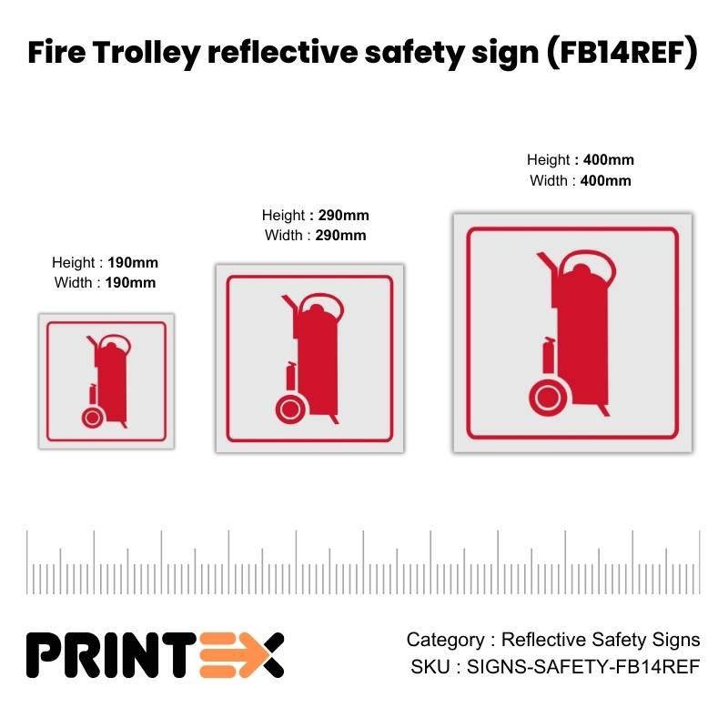 Enhance workplace and road safety with high-quality Fire Trolley reflective safety sign (FB14REF) made from durable Chromadek steel. Designed for high visibility during the day and night, these signs are ideal for construction sites, warehouses, factories, and public areas where clear safety communication is essential.