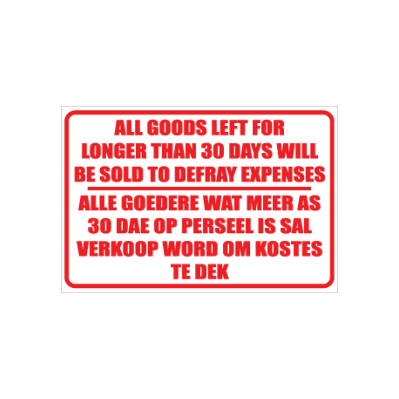 In today’s litigious environment, Goods Not Collected 30days Sign are critical for protecting your business from legal risks. Whether you operate a gym, parking facility, warehouse, event venue, or recreational space, clear disclaimer signage helps you manage liability by setting expectations upfront.