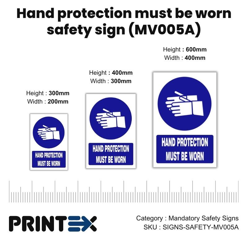 Our SABS-approved Hand Protection Must Be Worn Safety Sign (MV005A) complies with SANS 1186-1 and OHSA standards, ensuring your business meets South African legal safety requirements. Featuring bold blue backgrounds with white pictograms, these signs provide clear instructions on required safety actions to prevent accidents and promote a secure working environment.