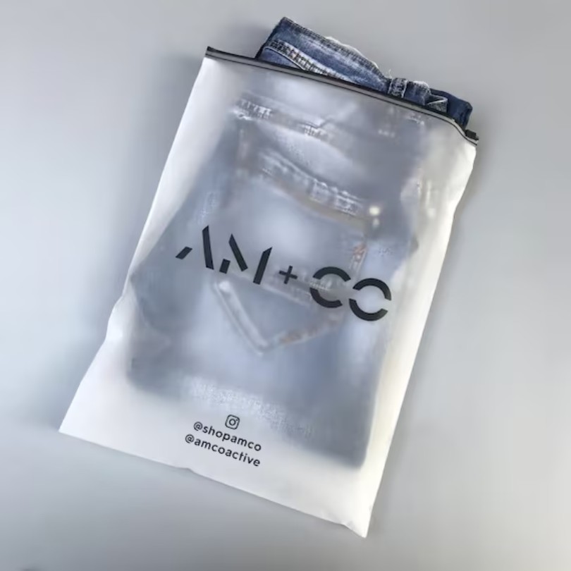 - Economy Frosted PVC Material: Made from high-quality, frosted LDPE, these bags offer a smooth, semi-transparent finish that gives your products a modern and professional look.