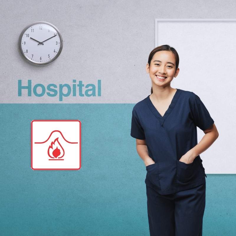 The Location of Fire Blanket (FB9) safety sign has a red flame covered by a blanket on the square shaped safety sign.