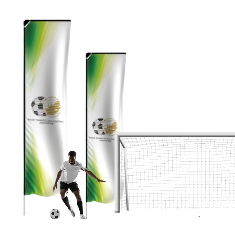 Crafted for outdoor use, each banner includes a durable telescopic pole system, full-colour fabric print, ground spike or cross base, and a convenient carry bag. These flags offer maximum exposure, even in open or windy environments, and are easy to assemble and transport.