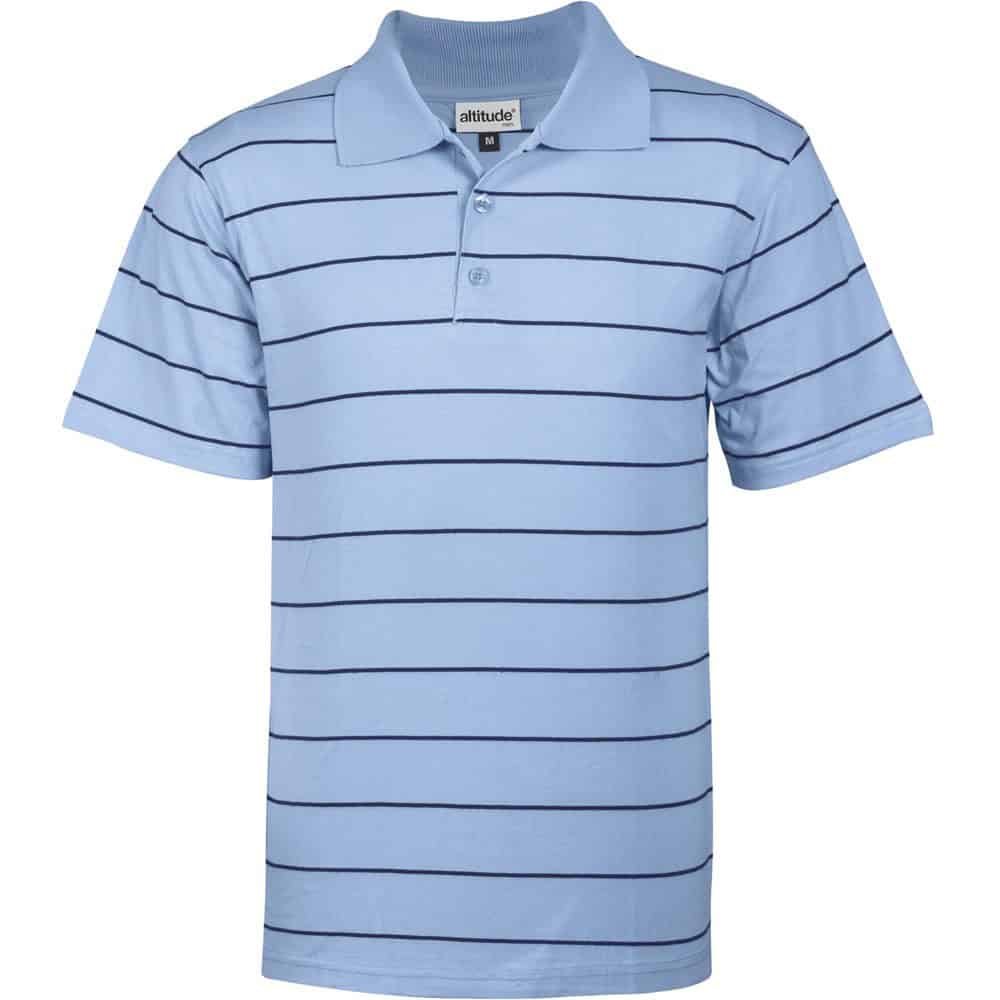 Enhance your brand visibility with the Mens Stinger Golf Shirt – Sky Blue from Printex. Whether you need corporate giveaways, branded clothing, or customized accessories, we provide premium products designed to leave a lasting impression. Classic and contemporary style gents short sleeve golfer is perfect for both corporate and casual everyday wear. The design features a unique yarn-dyed contrast horizontal feeder stripe detail, knitted collar. Locally manufactured.Sizes: Gents: (S – 5XL).
