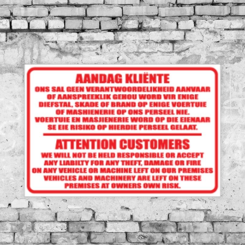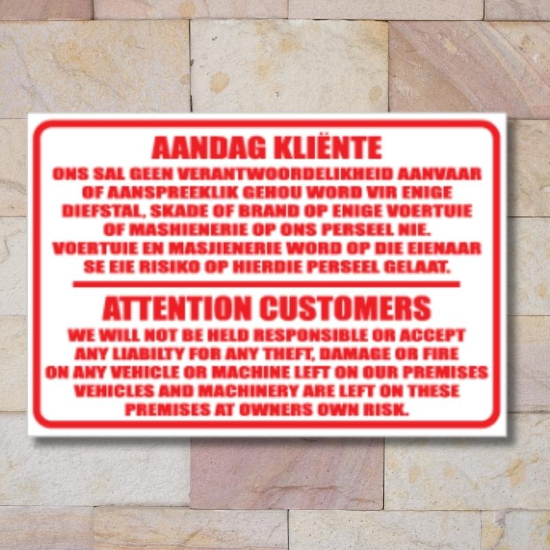 Our indemnity and disclaimer signs are designed to communicate terms of entry, service limitations, and user responsibilities effectively—ensuring that customers and visitors are well-informed before engaging with your space or services.