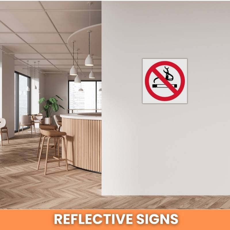 Enhance workplace and road safety with high-quality No Smoking reflective safety sign (PV01REF) made from durable Chromadek steel. Designed for high visibility during the day and night, these signs are ideal for construction sites, warehouses, factories, and public areas where clear safety communication is essential.