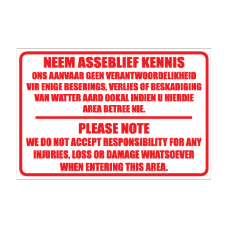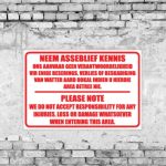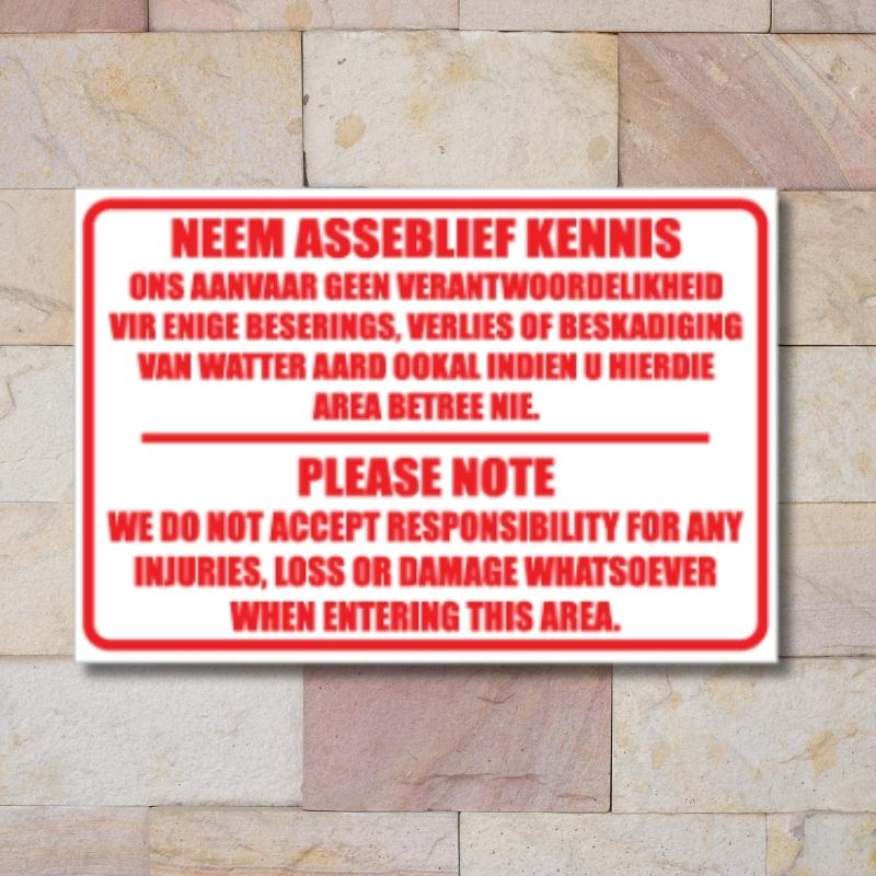 Our indemnity and disclaimer signs are designed to communicate terms of entry, service limitations, and user responsibilities effectively—ensuring that customers and visitors are well-informed before engaging with your space or services.