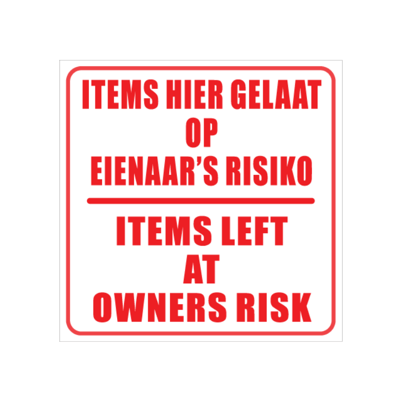 Our Owners Risk Business Sign is a clear and easy to read sign and has been made from durable quality materials.