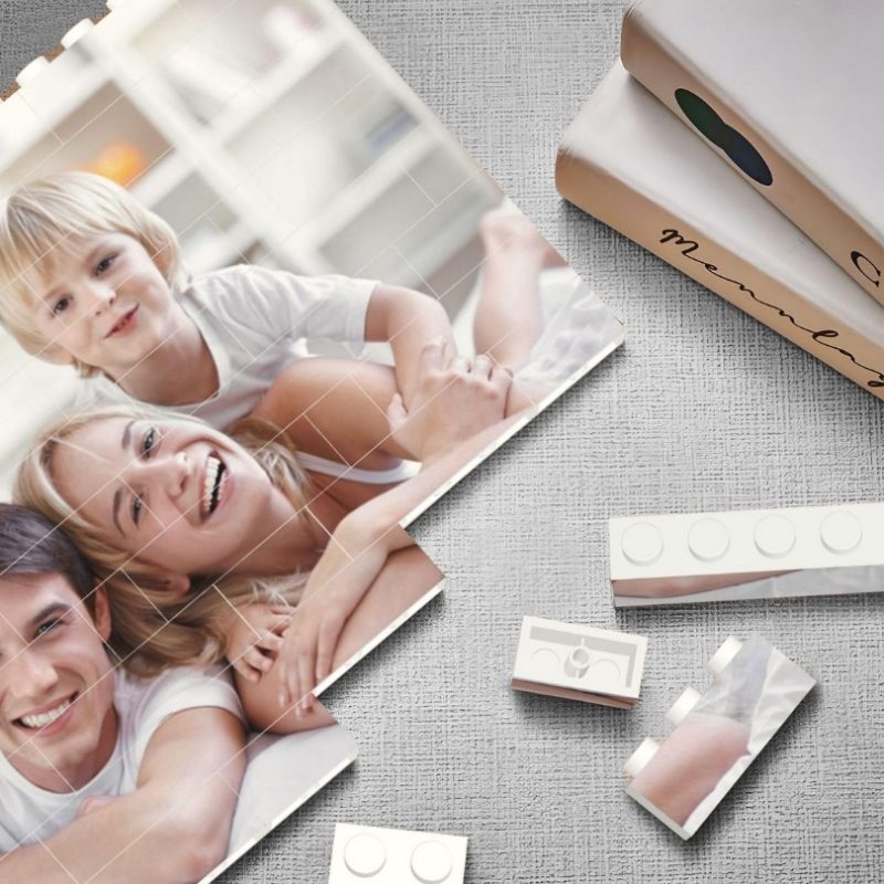 Print your wedding photo or a fun image for the kids and start building your custom printed photo brick puzzle today!