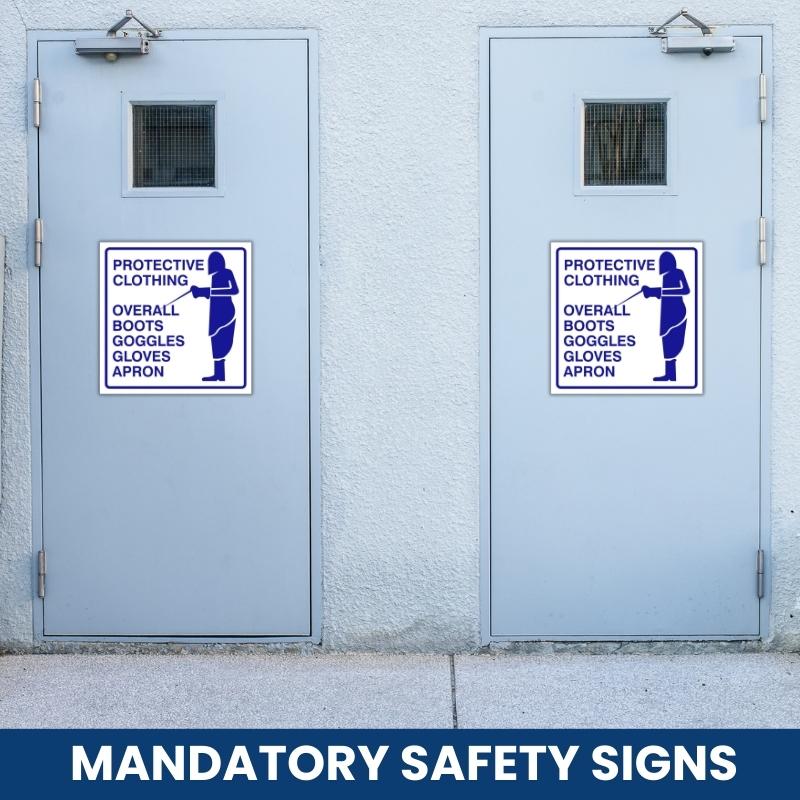 Our SABS-approved Protective Clothing Safety Sign (M083) complies with SANS 1186-1 and OHSA standards, ensuring your business meets South African legal safety requirements. Featuring bold blue backgrounds with white pictograms, these signs provide clear instructions on required safety actions to prevent accidents and promote a secure working environment.