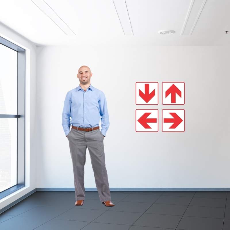 The arrow safety sign is also available as a Photoluminescent (glow in the dark) sign as a single safety sign. Or as a combination of more than one safety sign.