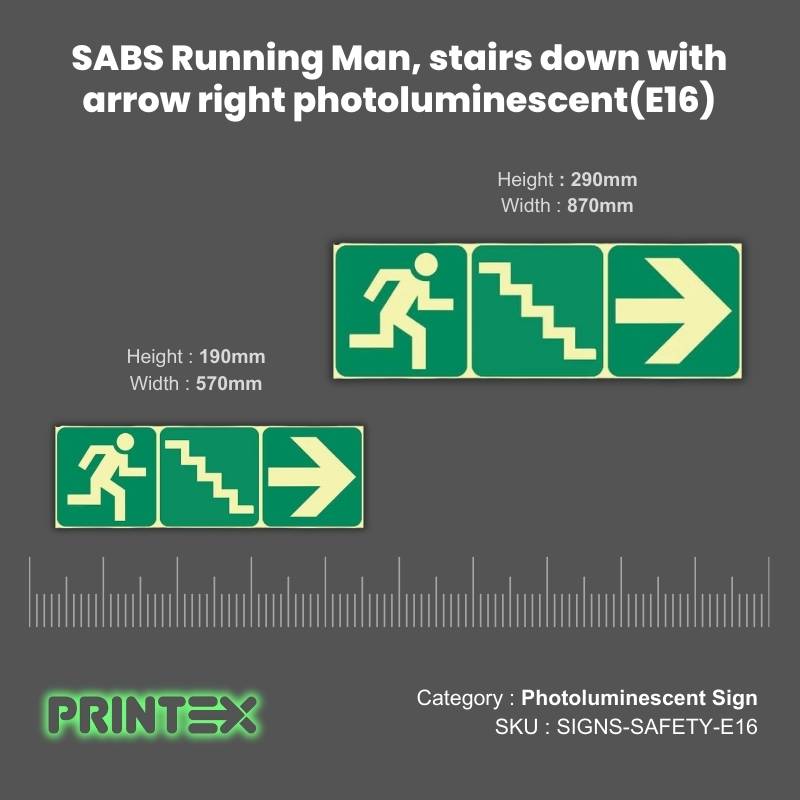 Stay compliant and enhance workplace safety with the DIRECTION TO ESCAPE ROUTE PHOTOLUMINESCENT SIGN that work when you need them most. Order today for peace of mind and SABS-certified quality.