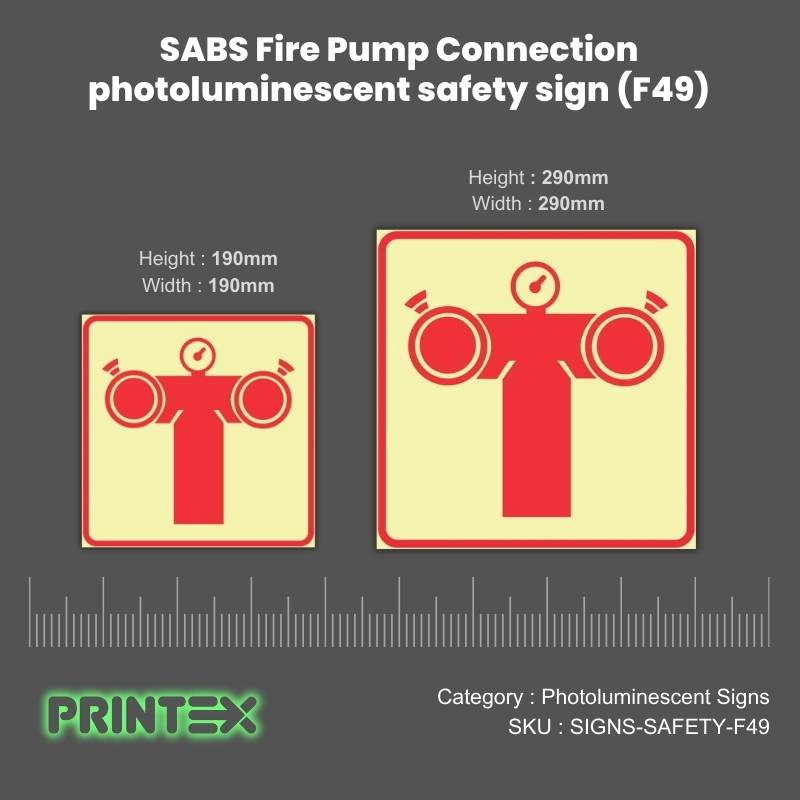Stay compliant and enhance workplace safety with the SABS Fire Pump Connection Photoluminescent Sign (F49) that work when you need them most. Order today for peace of mind and SABS-certified quality.