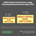 Stay compliant and enhance workplace safety with the SABS Smoke Control Doors Keep Closed Photoluminescent Sign (F42) that work when you need them most. Order today for peace of mind and SABS-certified quality.