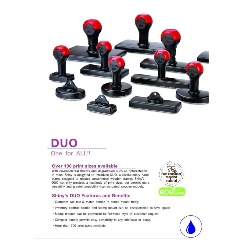 Enhance your professional documents, elevate your creative projects, and make a lasting impression with the Shiny 70x80mm DUO Hand Stamp. Perfect for businesses, educators, artists, and hobbyists, these stamps offer unparalleled versatility and quality. Join the countless satisfied customers who trust Shiny Duo for their stamping needs.