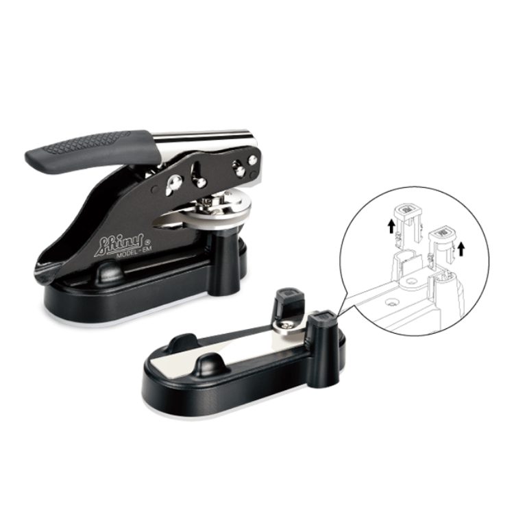 The Shiny Pocket Embosser Seal Smart Base is compatible with both ES and EM handheld embossing seal frames. When pairing with EM frame, please leave the spacers (see picture that indicated removing the spacers) at their positions, and remove the spacers when using with ES frame.