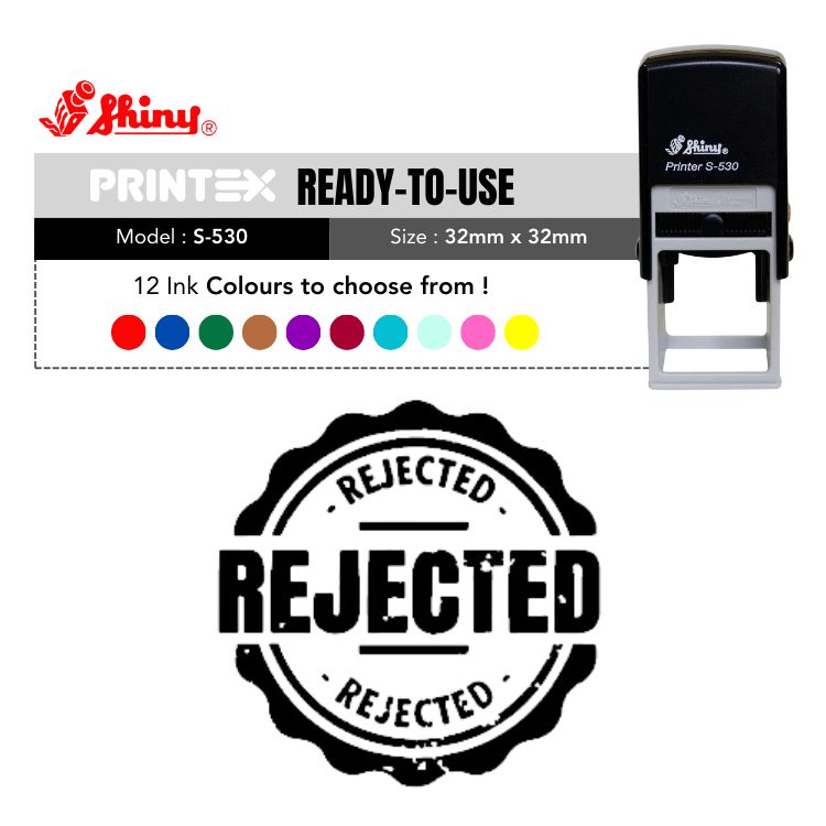 Our Shiny S-530 Ready Made Stamp Rejected are designed to provide clear, crisp impressions every time. Perfect for both professional and personal use, these stamps ensure efficiency and precision, saving you time and effort.
