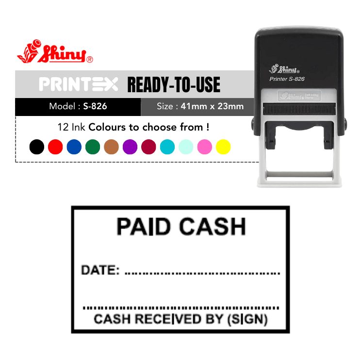 Our Shiny S-826 Ready Made Stamp Paid Cash are designed to provide clear, crisp impressions every time. Perfect for both professional and personal use, these stamps ensure efficiency and precision, saving you time and effort.
