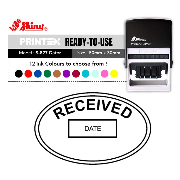 Our Shiny S-827D Ready Made Dater Stamp Received are designed to provide clear, crisp impressions every time. Perfect for both professional and personal use, these stamps ensure efficiency and precision, saving you time and effort.