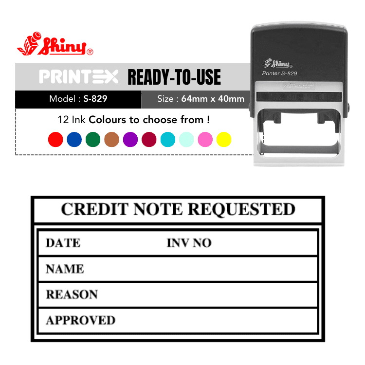 Our Shiny S-829 Ready Made Stamp Credit Note Requested are designed to provide clear, crisp impressions every time. Perfect for both professional and personal use, these stamps ensure efficiency and precision, saving you time and effort.