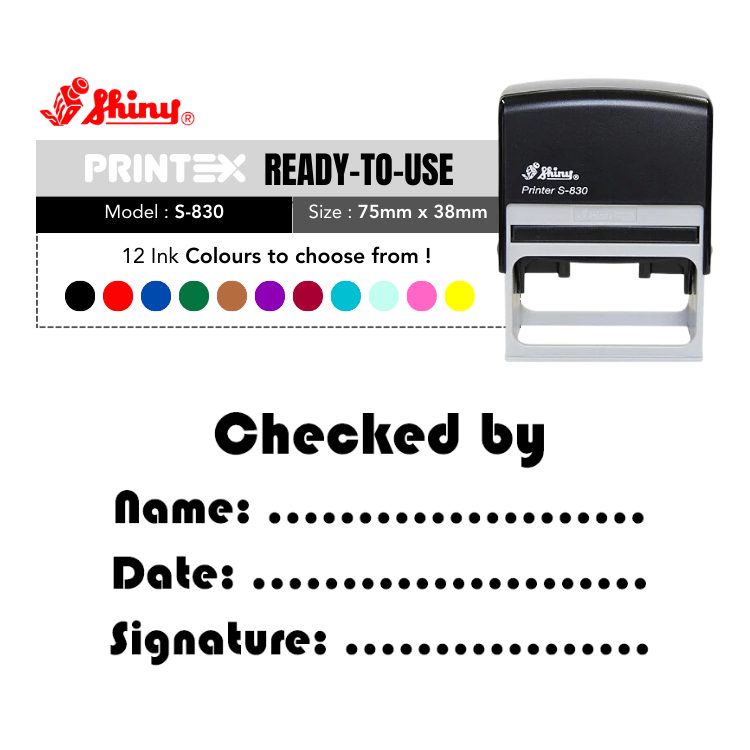 Our Shiny S-830 Ready Made Stamp Checked By are designed to provide clear, crisp impressions every time. Perfect for both professional and personal use, these stamps ensure efficiency and precision, saving you time and effort.
