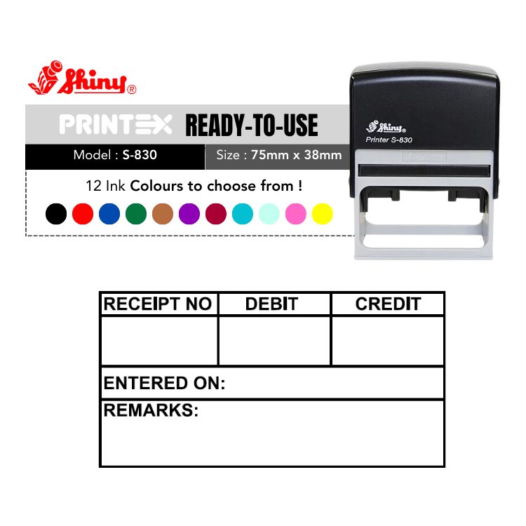 Our Shiny S-830 Ready Made Stamp Receipt No Block are designed to provide clear, crisp impressions every time. Perfect for both professional and personal use, these stamps ensure efficiency and precision, saving you time and effort.