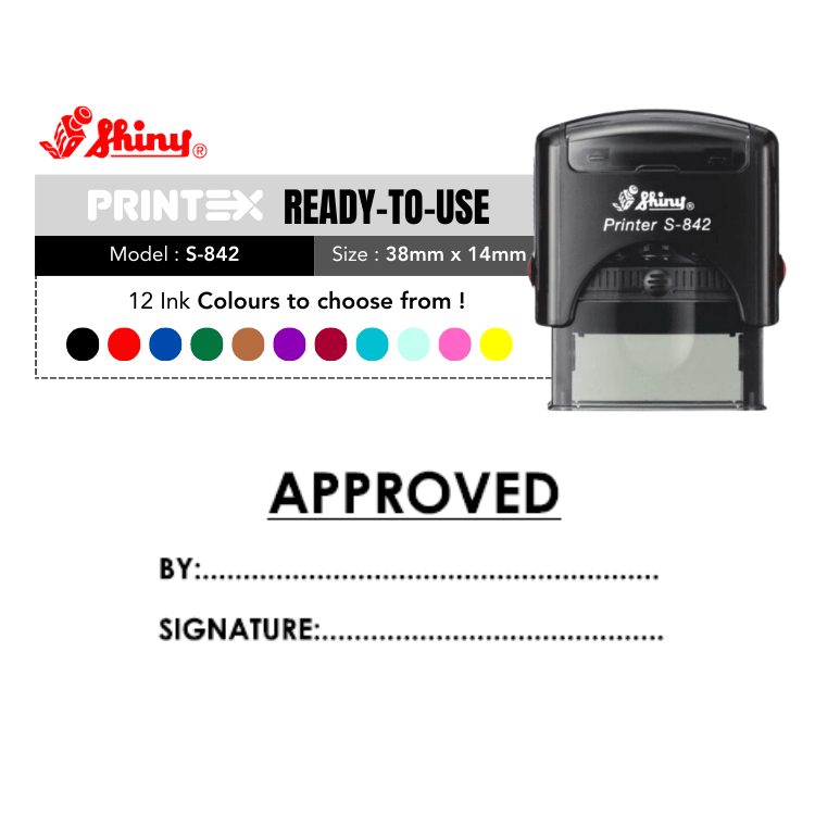 Our Shiny S-842 Ready Made Dater Stamp Approved By are designed to provide clear, crisp impressions every time. Perfect for both professional and personal use, these stamps ensure efficiency and precision, saving you time and effort.