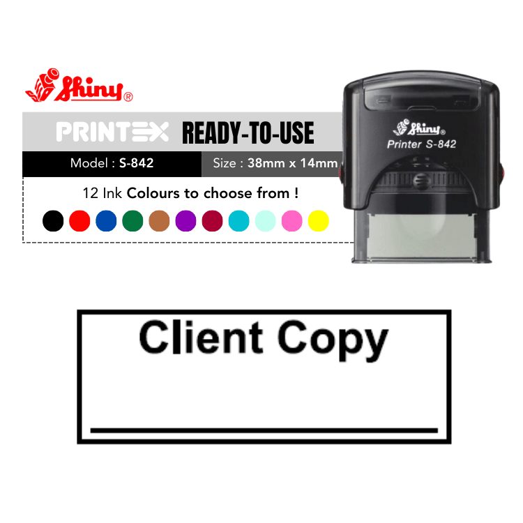Our Shiny S-842 Ready Made Dater Stamp Client Copy are designed to provide clear, crisp impressions every time. Perfect for both professional and personal use, these stamps ensure efficiency and precision, saving you time and effort.