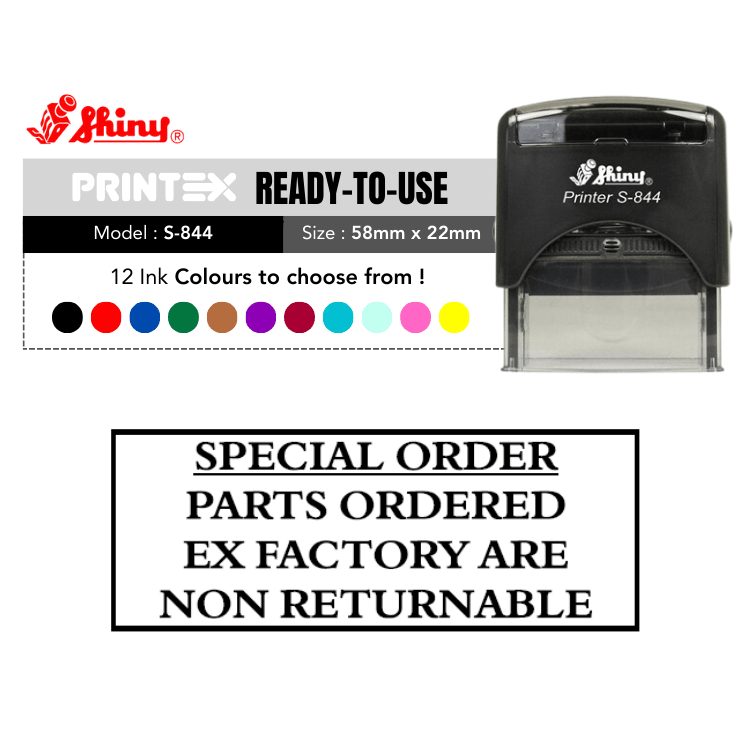 Our Shiny S-844 Ready Made Stamp Special order are designed to provide clear, crisp impressions every time. Perfect for both professional and personal use, these stamps ensure efficiency and precision, saving you time and effort.