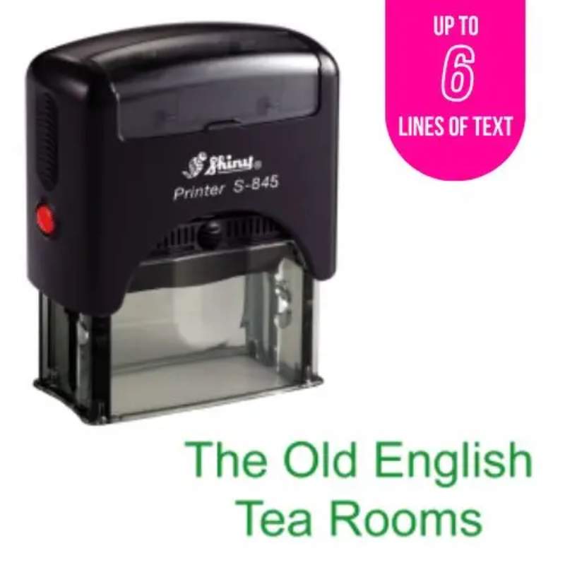 The Shiny S-845 Self-Inking Rubber Stamp is tailored for those who need a larger stamp size to showcase detailed information or creative designs. It’s the ultimate combination of functionality, durability, and convenience, making it a must-have for professional or personal use.