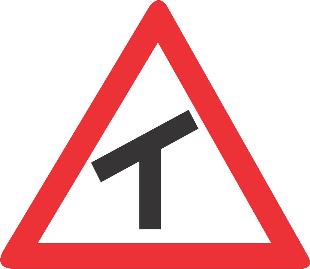 Skew T-Junction (Left) Road Sign (W106) play a critical role in alerting drivers to changes in road direction, layout, or structure. These warning signs improve road safety by giving advance notice of curves, junctions, roundabouts, merging lanes, and other potentially hazardous layouts. Recognized by their yellow diamond shape with bold black symbols, W100 signs are essential for highways, construction zones, and high-traffic intersections.