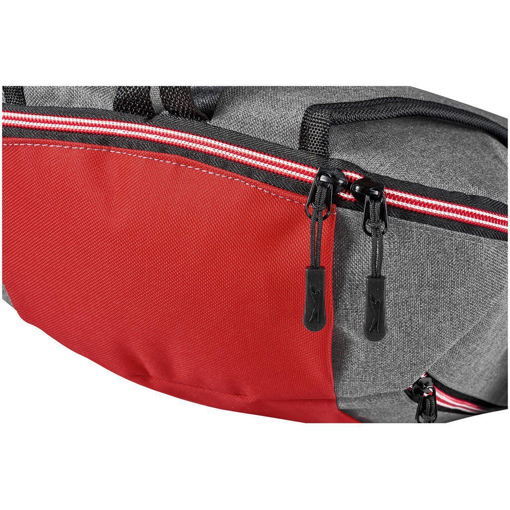 This sporty backpack is a member of the Slazenger Wembley collection. It includes a cooler bag, sports bag, drawstring bag, and gym towel.  The signature Slazenger reflective logo is on the front panel.