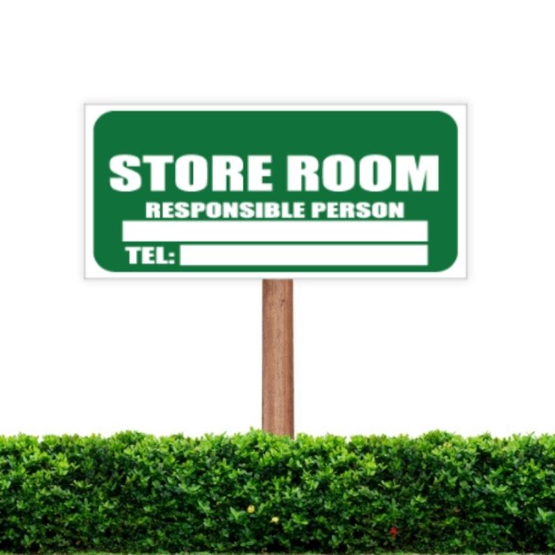 Store Room Sign can be mounted on fences, barricades, poles, or placed as freestanding boards.