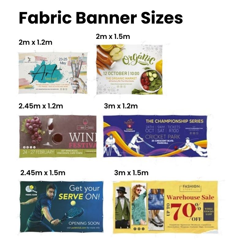 Our fabric banners are printed on high-quality polyester fabric that is lightweight, durable, and designed to produce sharp graphics and rich colours.