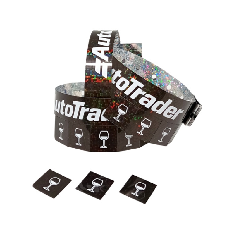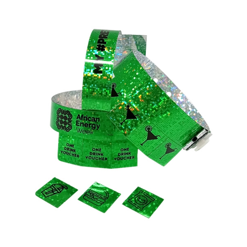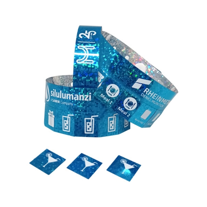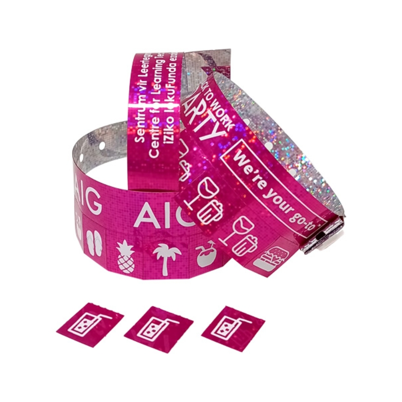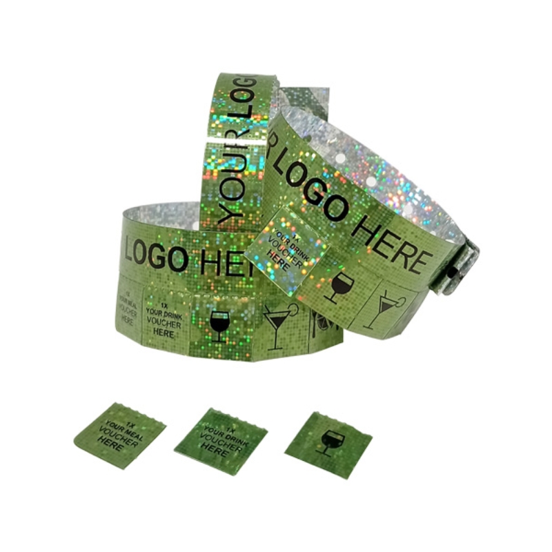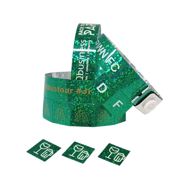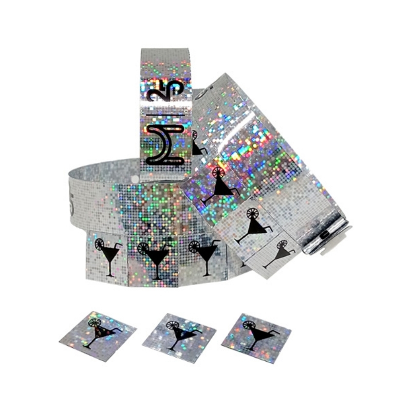 Achieve high-level security and easy guest identification with Tear-Off Tabs Wristbands. Perfect for concerts, VIP events, festivals, and exclusive gatherings, these wristbands feature a holographic finish that is not only visually appealing but also effective in preventing unauthorized access. The unique holographic design makes it easy to identify legitimate attendees, reducing the risk of unpaid entry and ensuring a smooth event experience.