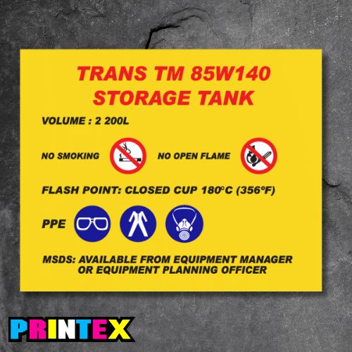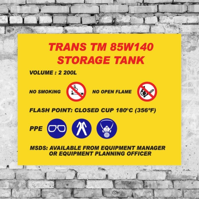 In the mining industry, clear and compliant Trans TM 85W140 Storage Tank Sign is essential to maintaining safety, meeting legal requirements, and improving operational efficiency. Our mining business signs are designed to withstand harsh environmental conditions while communicating vital information to workers, contractors, and visitors.