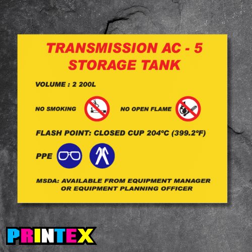 In the mining industry, clear and compliant Transmission AC-5 Storage Tank Sign is essential to maintaining safety, meeting legal requirements, and improving operational efficiency. Our mining business signs are designed to withstand harsh environmental conditions while communicating vital information to workers, contractors, and visitors.