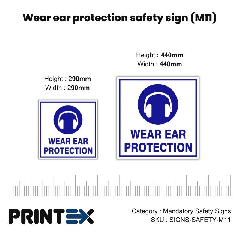 Our SABS-approved Wear Ear Protection Safety Sign (M11) complies with SANS 1186-1 and OHSA standards, ensuring your business meets South African legal safety requirements. Featuring bold blue backgrounds with white pictograms, these signs provide clear instructions on required safety actions to prevent accidents and promote a secure working environment.